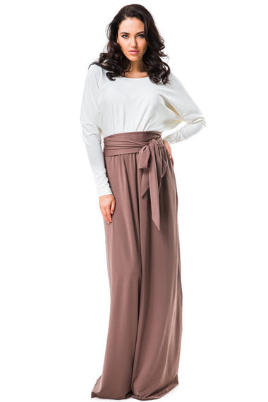 Нежное сочетание цветов притягивает взгляды! Платье дополняет широкий пояс из ткани в тон юбки. Плотная структура ткани и простой покрой скроет недостатки, а V-образный вырез на спине придаст сексуальности.