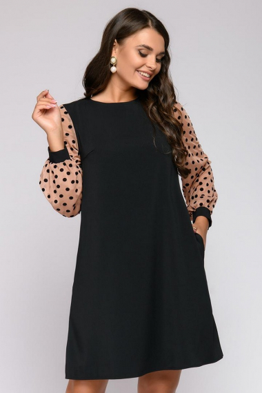 Фото товара 21969, черное платье свободного силуэта с длинными рукавами из фатина